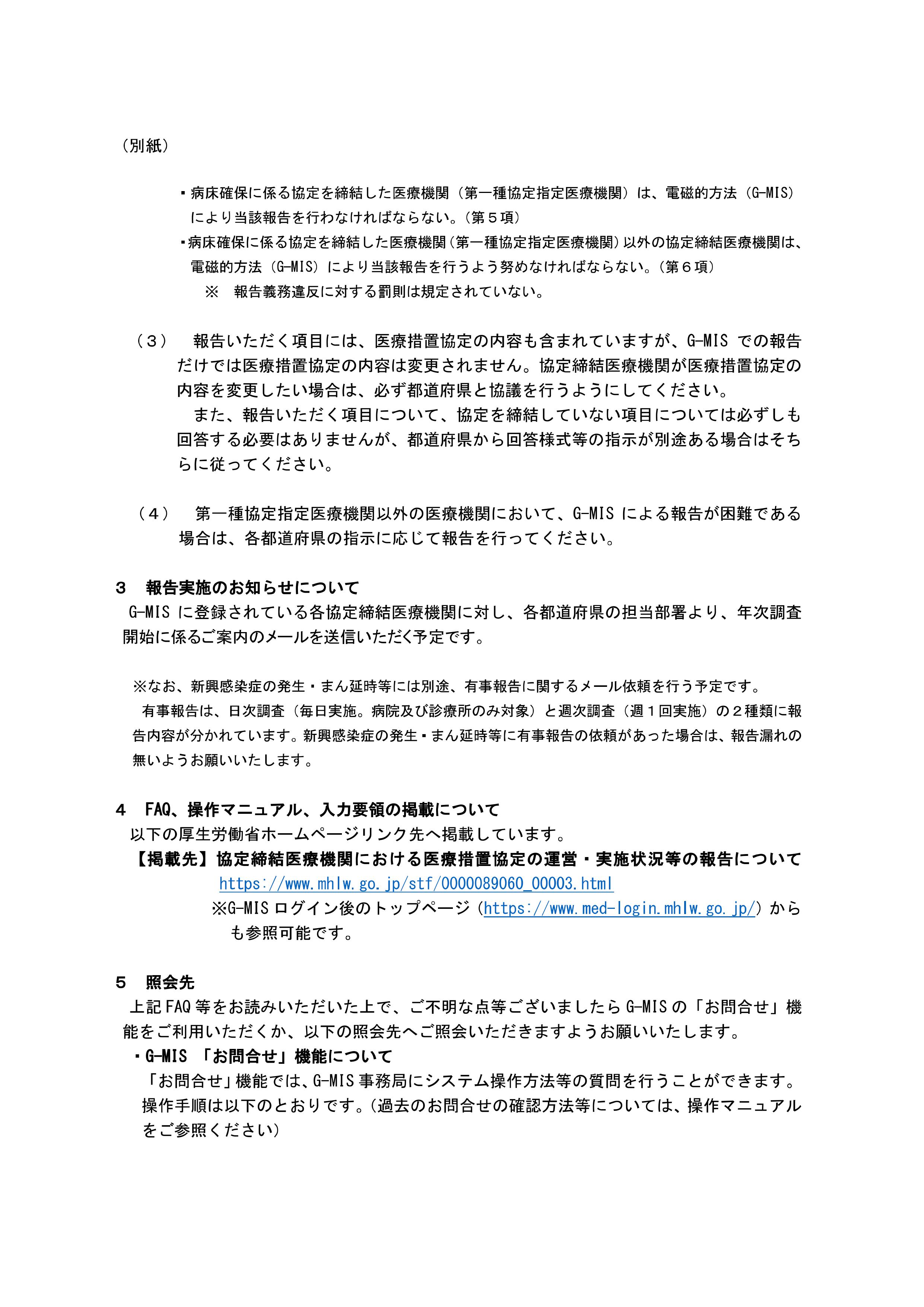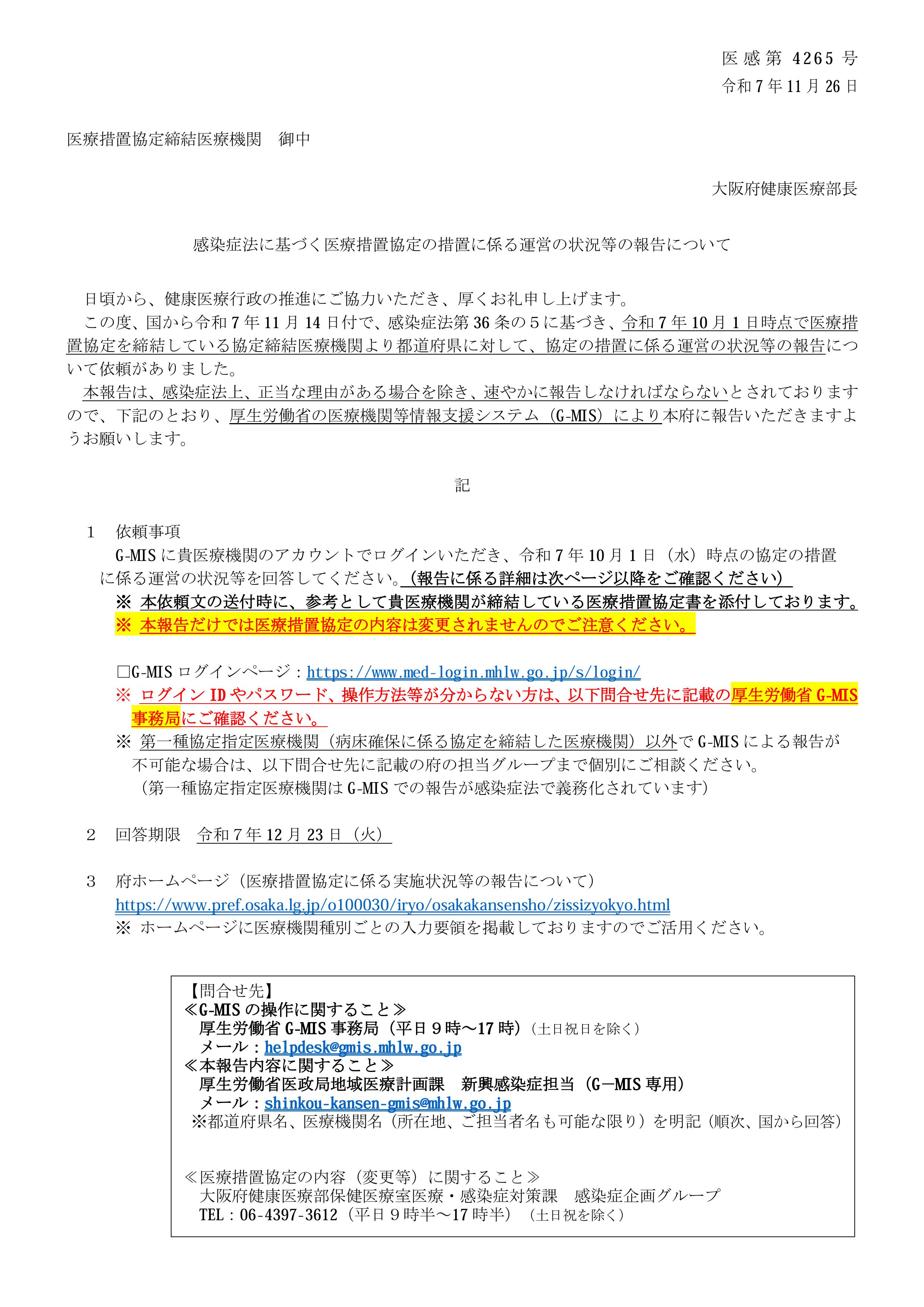 感染症法に基づく医療措置協定の措置に係る運営の状況等の報告について