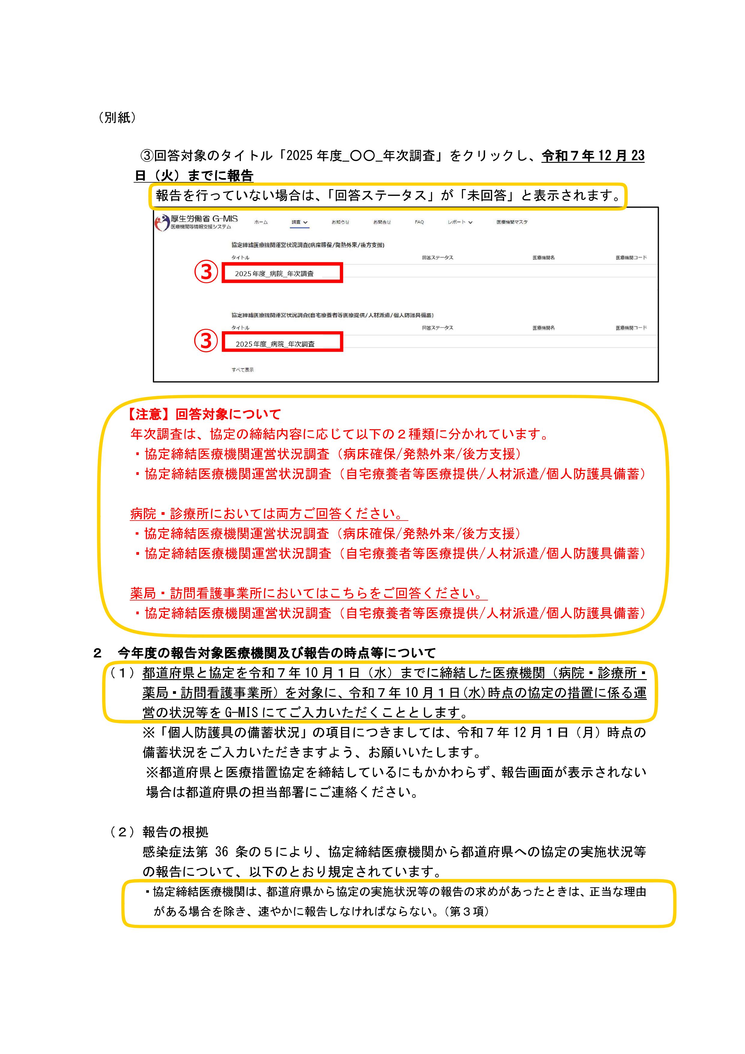 ≫ 感染症法に基づく医療措置協定の措置に係る運営の状況等の報告について