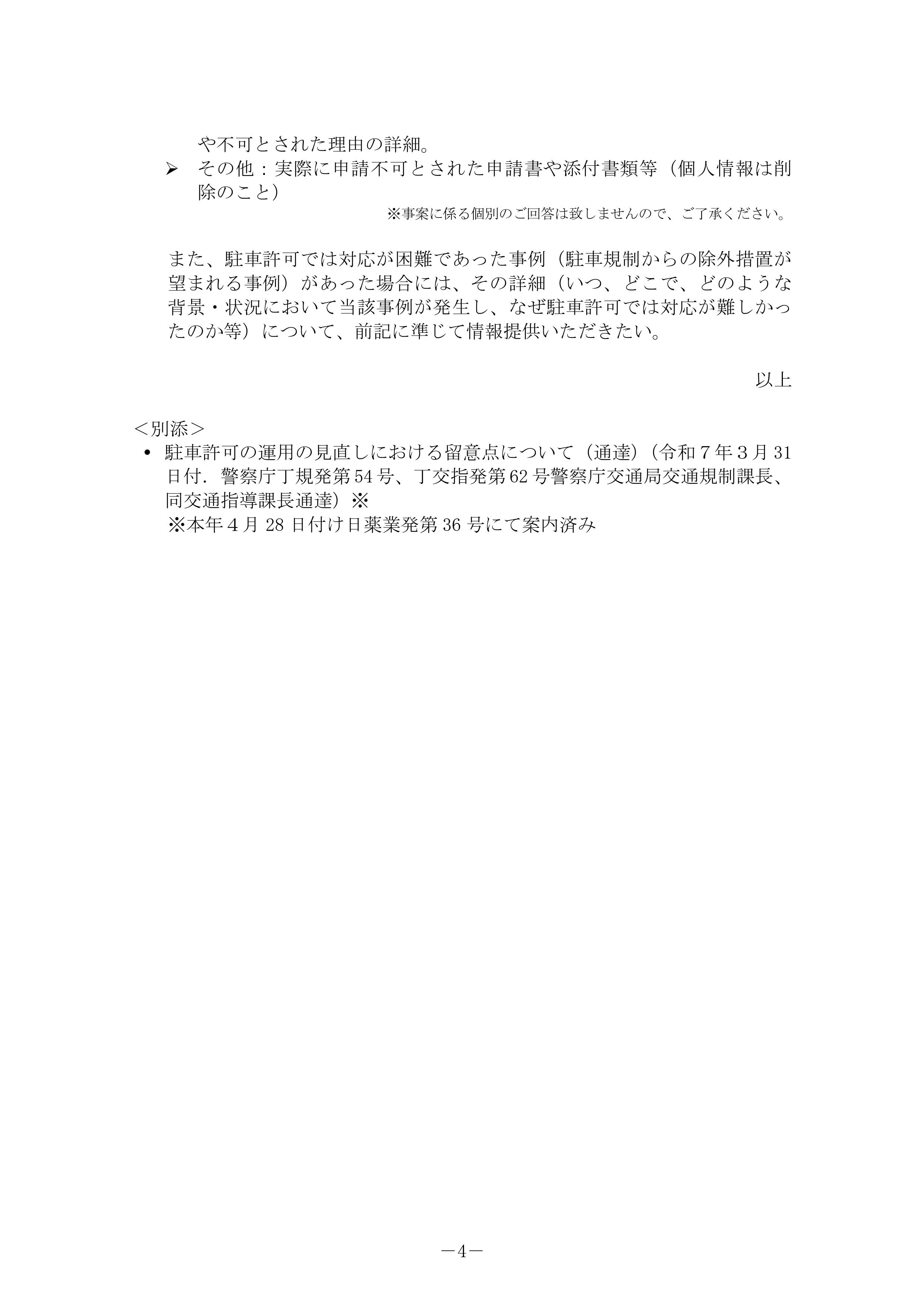 ≫ 駐車許可及び駐車規制からの除外措置の運用の見直しについて