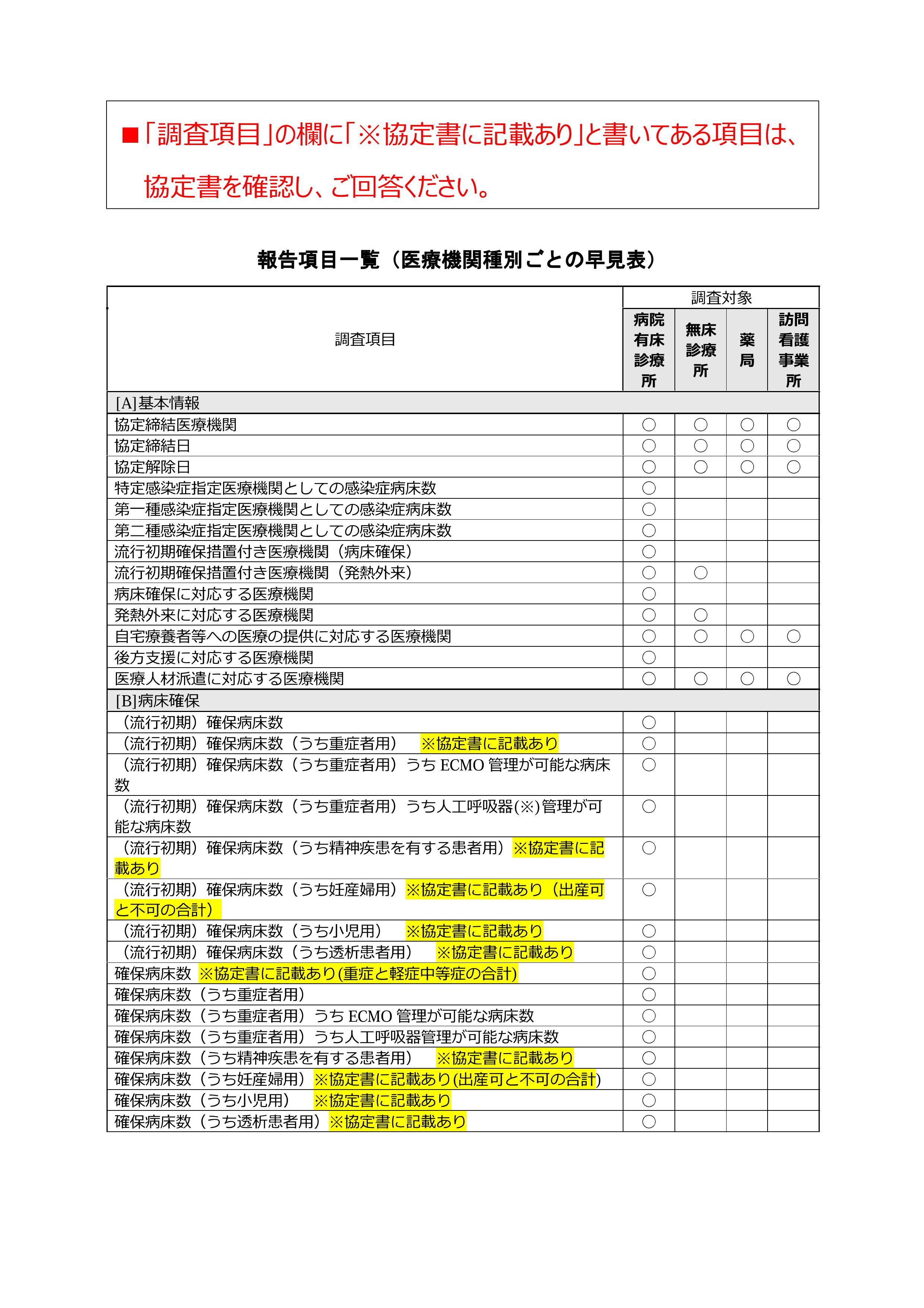 感染症法に基づく医療措置協定の措置に係る運営の状況等の報告について